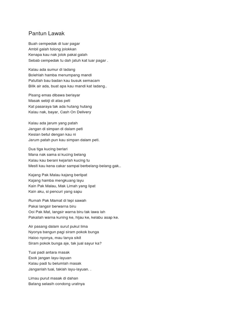 Pantun Melayu Pantun Dua Tiga Kucing Berlari