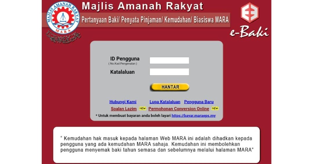 Untuk download borang cik boleh taip borang pengurangan bayaran balik mara di enjin carian google. Permohonan pengurangan pinjaman akan terbatal sekiranya maklumat yang diberikan adalah palsu. E conversion mara e conversion mara posted on 18 06 2015 by ketua web. Semua anggota yang sedang berkhidmat bekas anggota dan pesara mara yang mempunyai pinjaman pembiayaan kemudahan mara dikehendaki menggunakan sistem e baki bagi membuat cetakan penyata akaun secara online menggantikan penyata akaun bercetak yang dikeluarkan oleh mara sebelum ini.