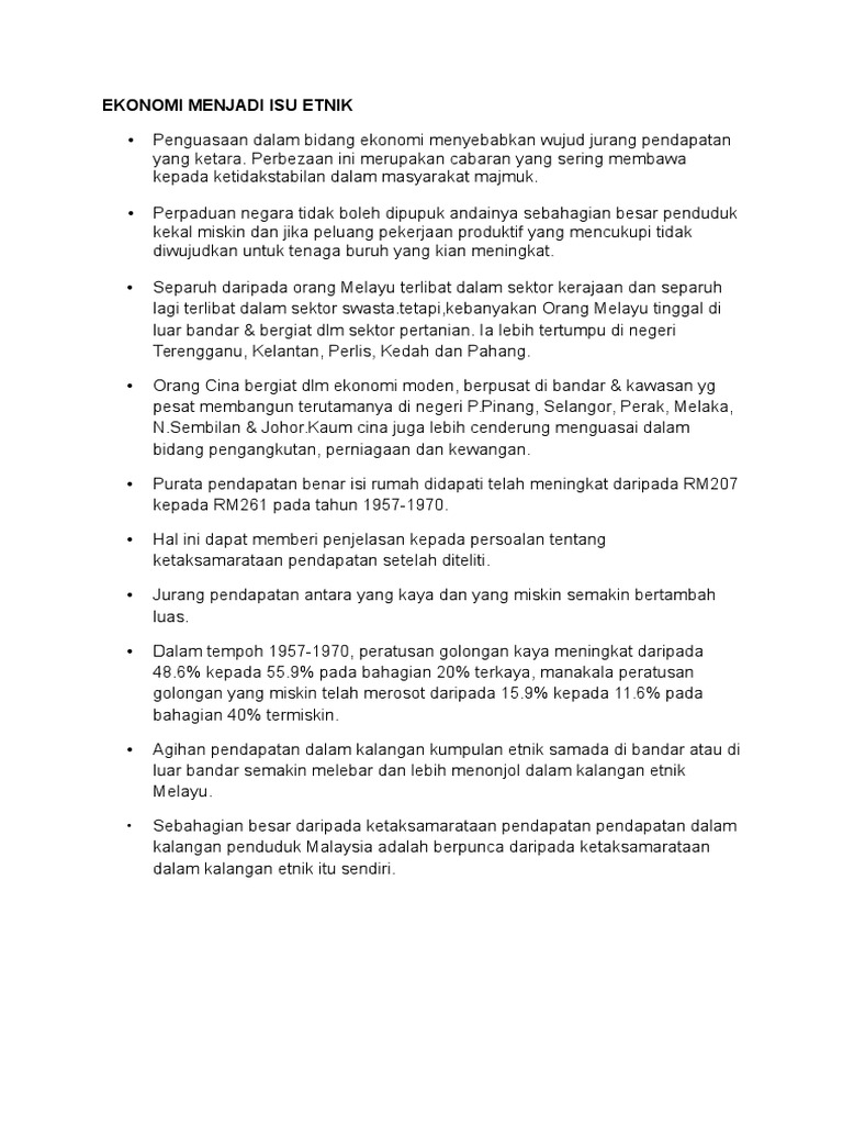 Bab 3 Bab 3 Limpahan Kemakmuran Merentasi Etnik 3 1 Pengenalan 3 2 Isu Sosioekonomi Pada Awal Kemerdekaan 3 3 Ekonomi Menjadi Isu Etnik 3 4 Dasar Course Hero