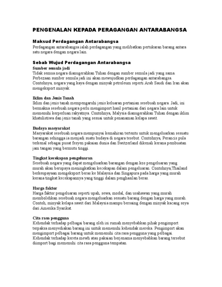 Ekonomi Tingkatan 5 Bab 2 Perdagangan Antarabangsa