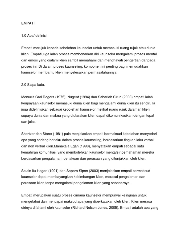 Empati 1 0 apa definisi empati merujuk kepada kebolehan kaunselor untuk memasuki ruang rujuk atau dunia klien. Ianya memberi kebaikan kepada kedua dua pemimpin dan subordinat. Pada dasarnya orang dengan rasa empati kepada orang lain itu dapat merasakan manfaat dari empati ialah memiliki hidup yang lebih lama dan juga lebih sehat. Seperti penegasan presiden jokowi sendiri.