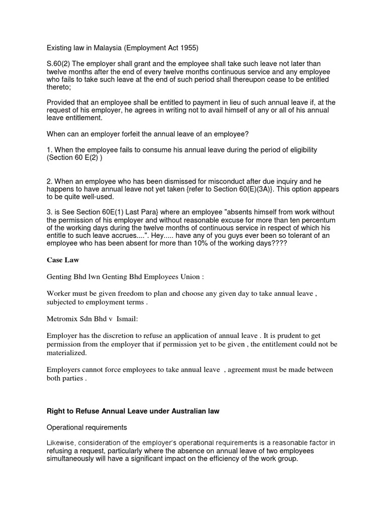 Case Law Right To Refuse Annual Leave Under Australian Law Annual Leave Parental Leave Free 30 Day Trial Scribd