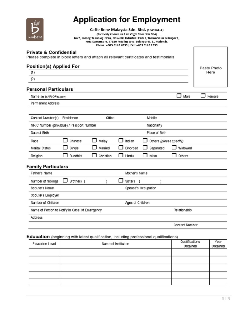 Doc Employment Application Form Malaysia Aishah Eca Academia Edu