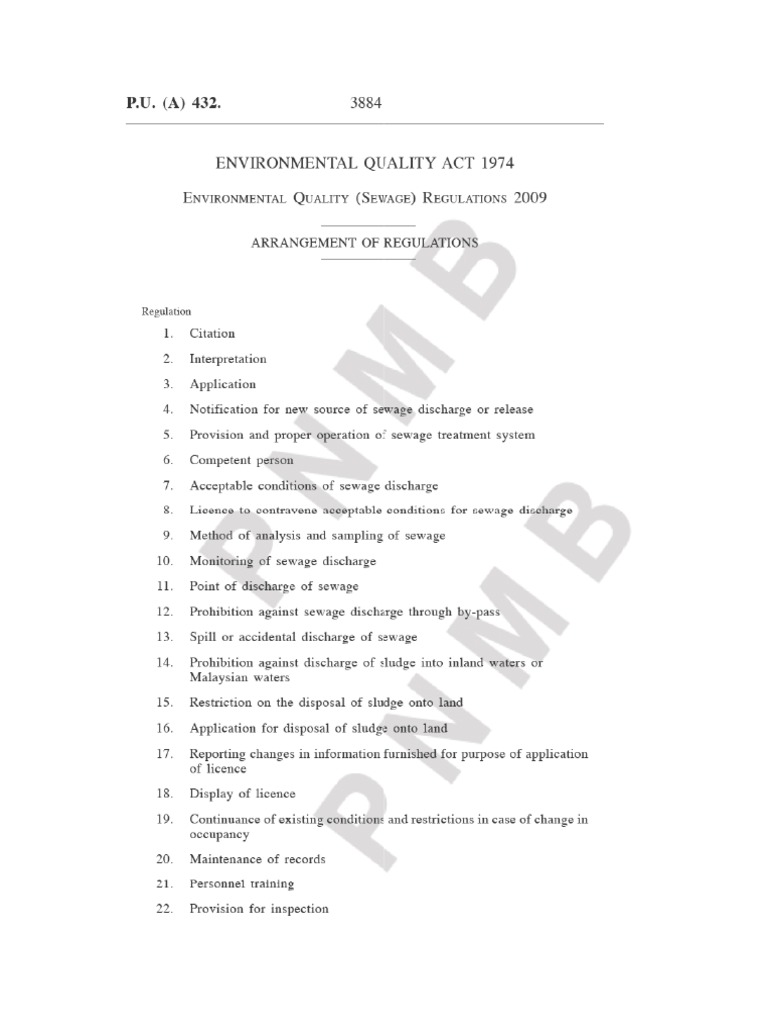 Environmental Quality Sewage Regulations 2009 Sewage Sewage Treatment