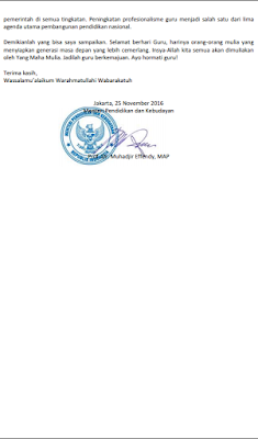 Sambutan Menteri Pendidikan Dan Kebudayaan Dalam Peringatan Hari Guru