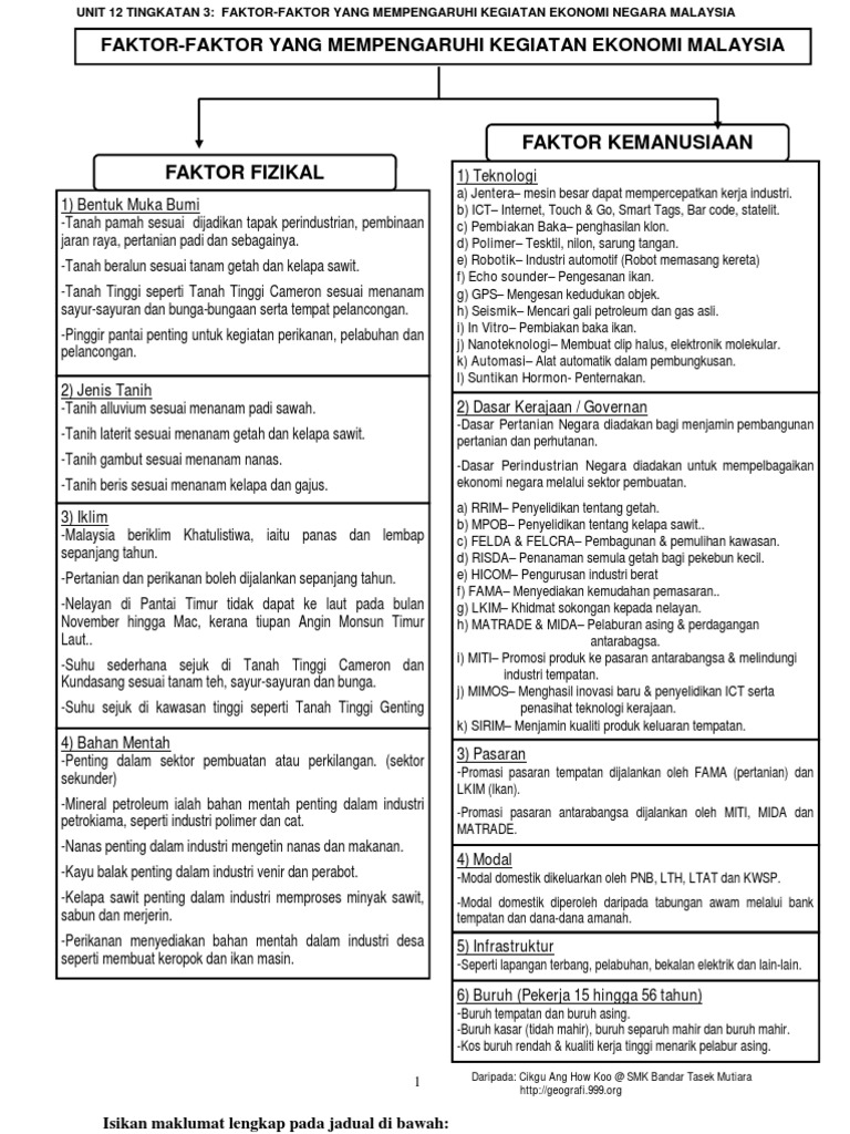 Modul P P Geografi Tingkatan 3 Pmr Faktor2 Yang Mempengaruhi Kegiatan Ekonomi