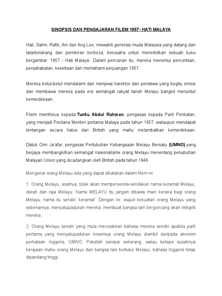 Sinopsis Dan Pengajaran Filem 1957 Hati Malaya