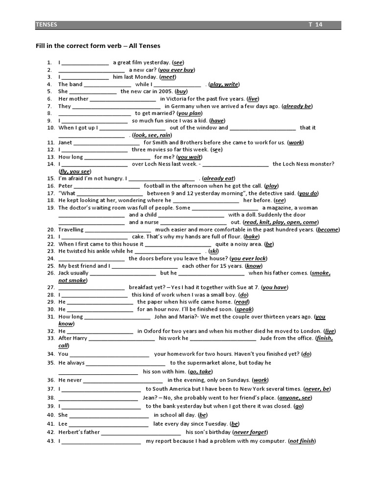 T26 Tenses T 26 Fill In The Correct Form Of The Verb All Tenses 1 They In Chicago For 20 Years Be 2 I A Wonderful Film In The Cinema Last Night See 3 Course Hero
