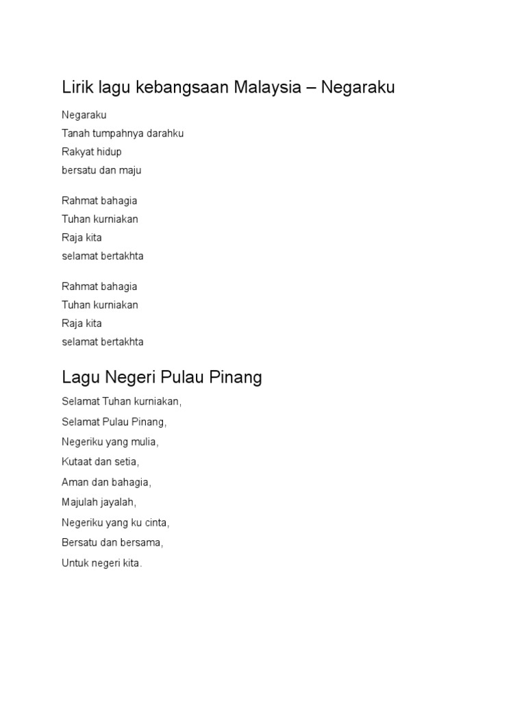 Lagu Negeri Pulau Pinang Wikipedia Bahasa Melayu Ensiklopedia Bebas