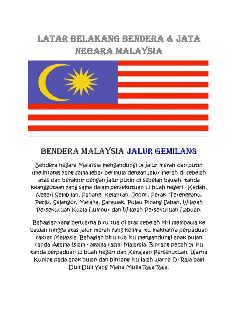 Bendera Malaysia Mengandungi 14 Jalur Merah Dan Putih