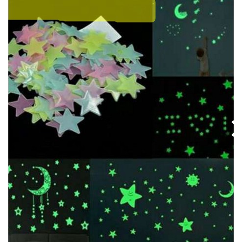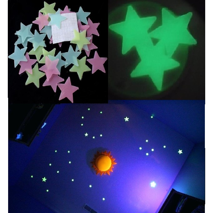 Glow In The Dark 100pcs Ukuran 3cm Bintang Stiker Dinding 50gr Shopee Indonesia