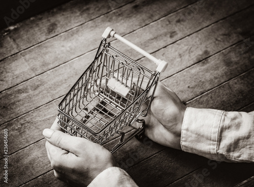 Young Woman Hands Holding Little Cart On Wooden Background Half Side View Image In Black And White Color Style Buy This Stock Photo And Explore Similar Images At Adobe Stock