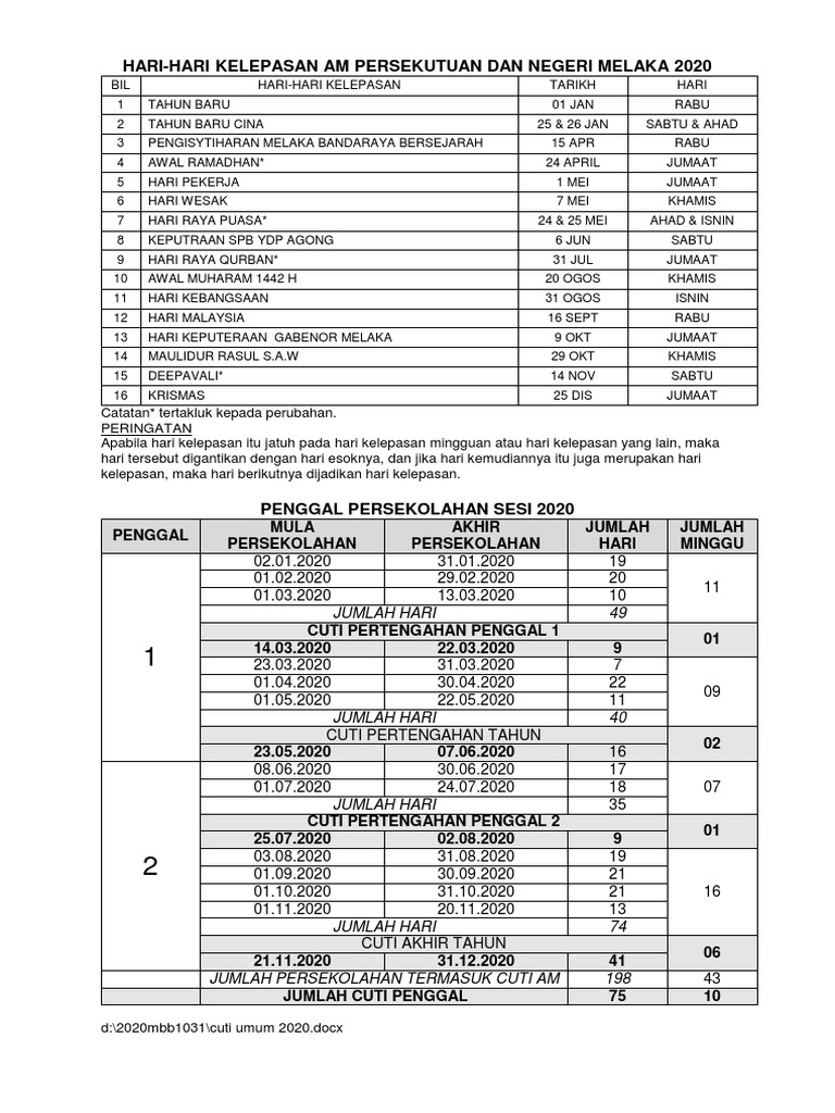 Takwim Cuti Sekolah 2020 Senarai Cuti Umum Dan Cuti Perayaan Di Malaysia