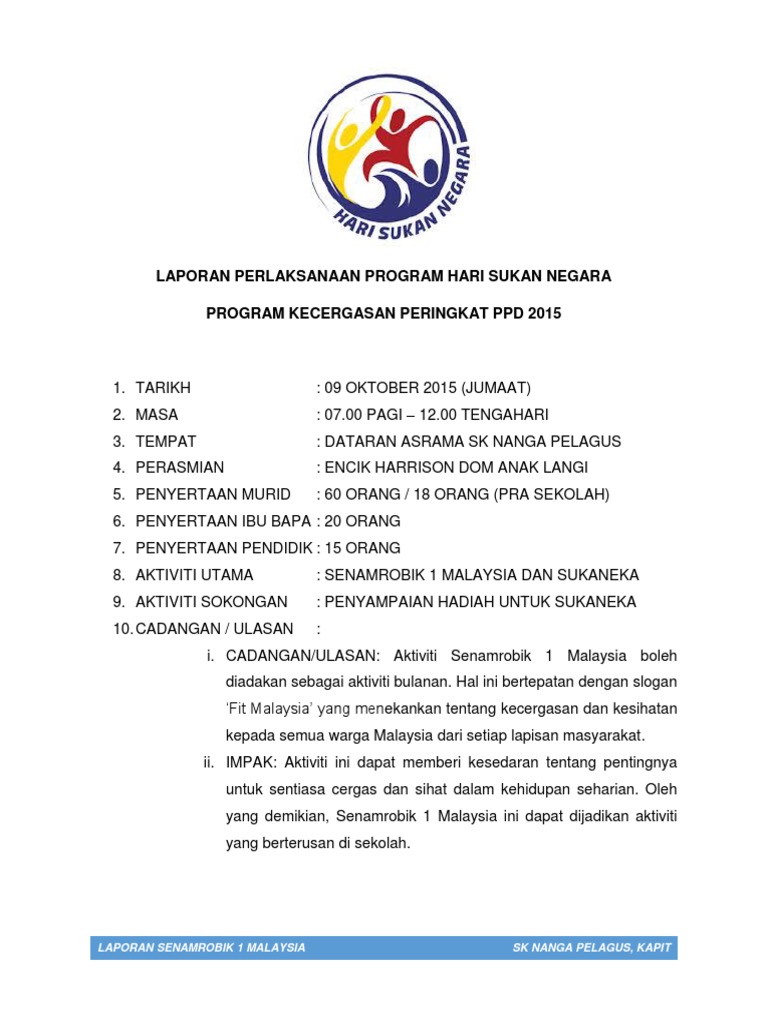 Laporan Perlaksanaan Program Hari Sukan Negara Program Kecergasan Peringkat Ppd 2015