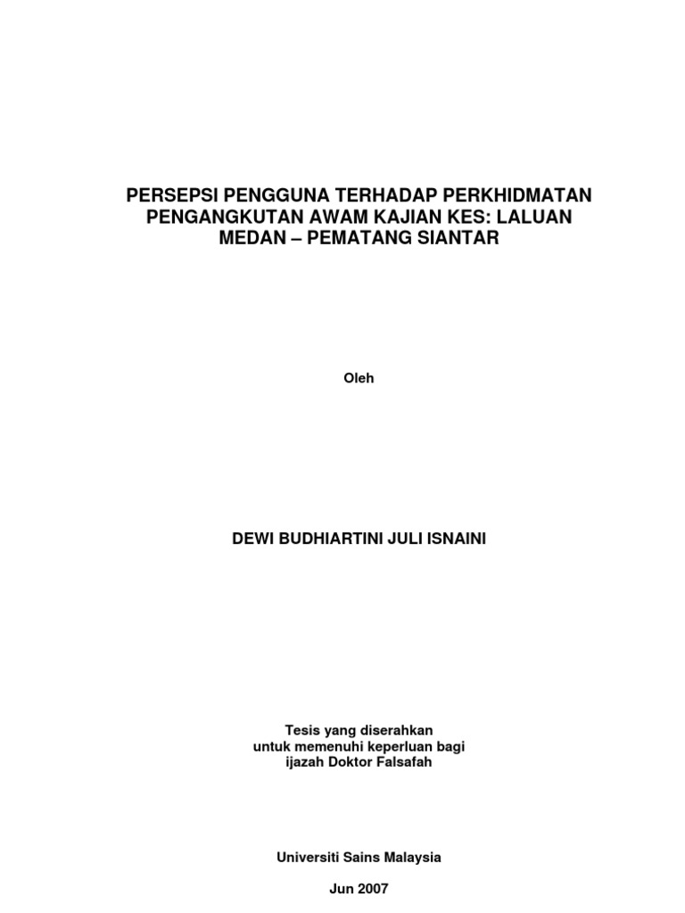 Persepsi Pengguna Terhadap An Pengangkutan Awam Kajian Kes Laluan Medan Pematang Siantar