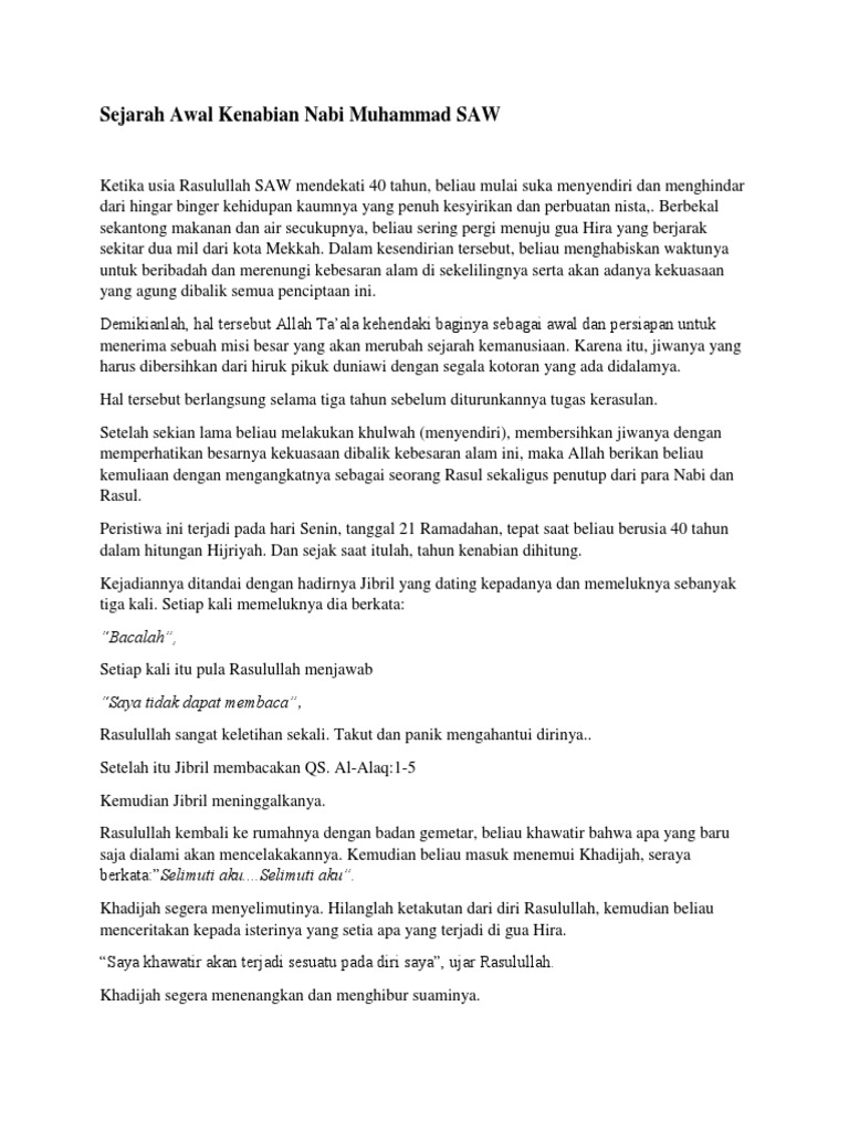 Sejarah Awal Kenabian Nabi Muhammad Saw