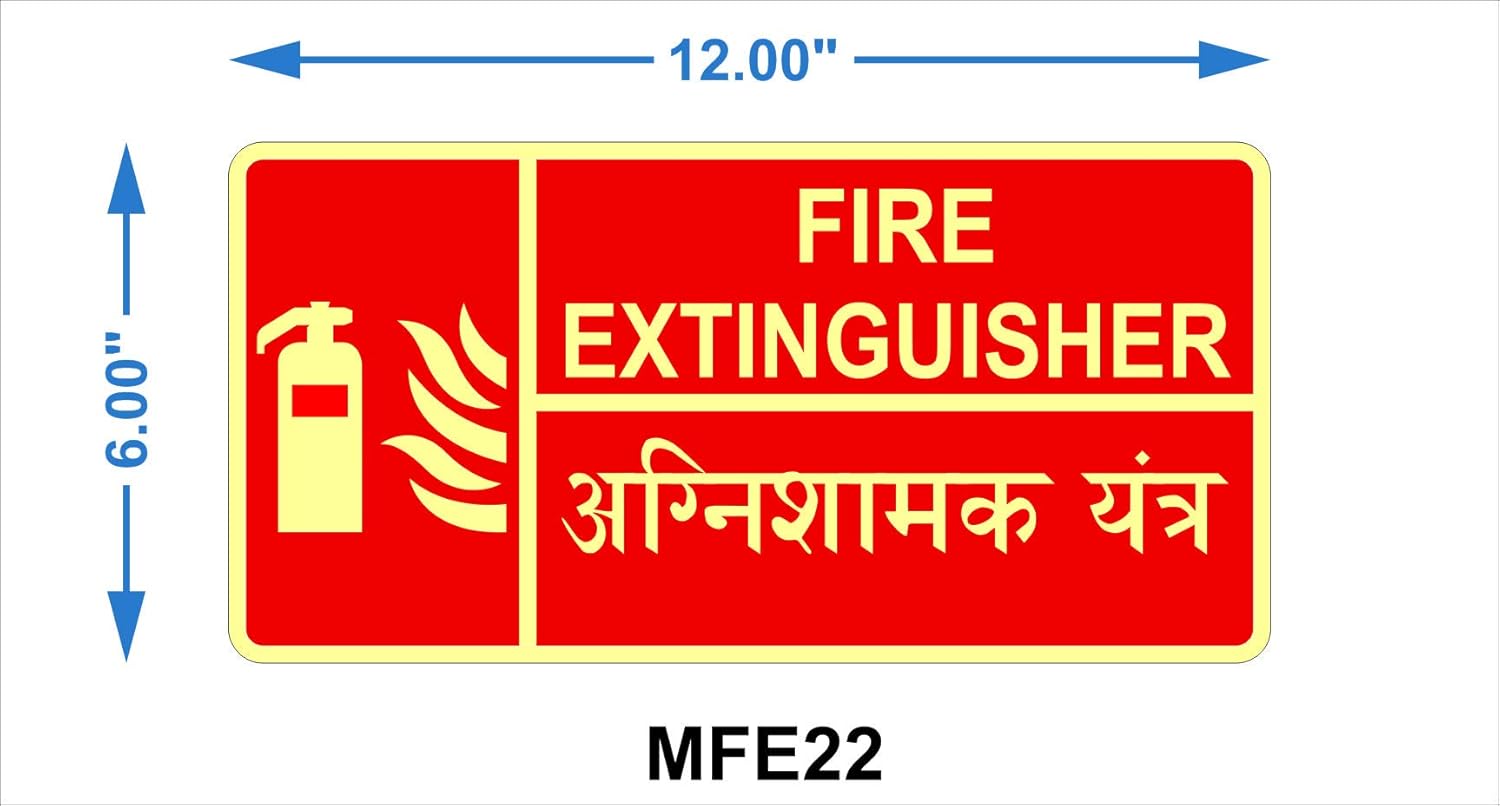 Mintkraft Pack Of Ten Fire Extinguisher Hindi English Signage On Foam Sheet Glow In Dark Fire Equipment Self Adhesive Uv Vinyl Indoor Outdoor Hospital Commercial Use Size Size 6 X 12 Mfe118
