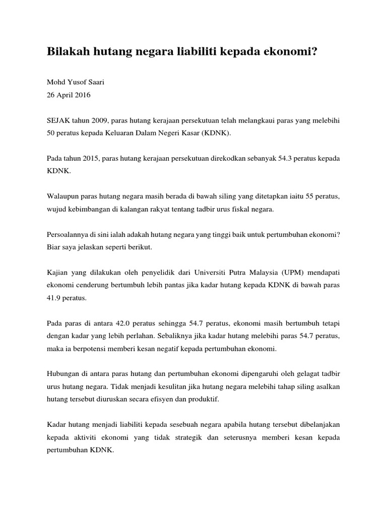 Utara Tema 1 Doc Tema 1 Hutang Kerajaan Persekutuan Di Malaysia Data Kajian Sekurang Kurangnya Lima Tahun Tajuk 1 Hubungan Antara Kdnk Dengan Hutang Course Hero