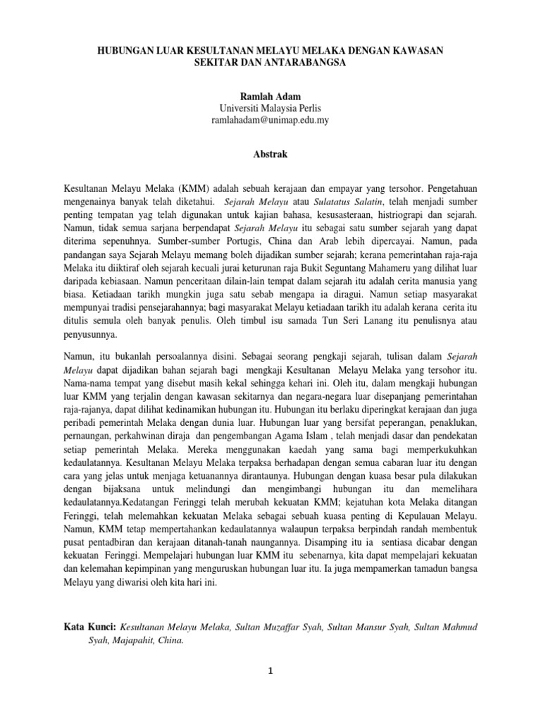 Hubungan Luar Kesultanan Melayu Melaka Dengan Kawasan Sekitar Dan Antarabangsa Ramlah Adam Universiti Malaysia Perlis Pdf Download Gratis
