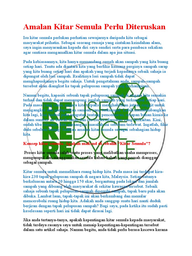 Cuit Cuit Bahasa Karangan Spm Bahagian A Ii Kitar Semula