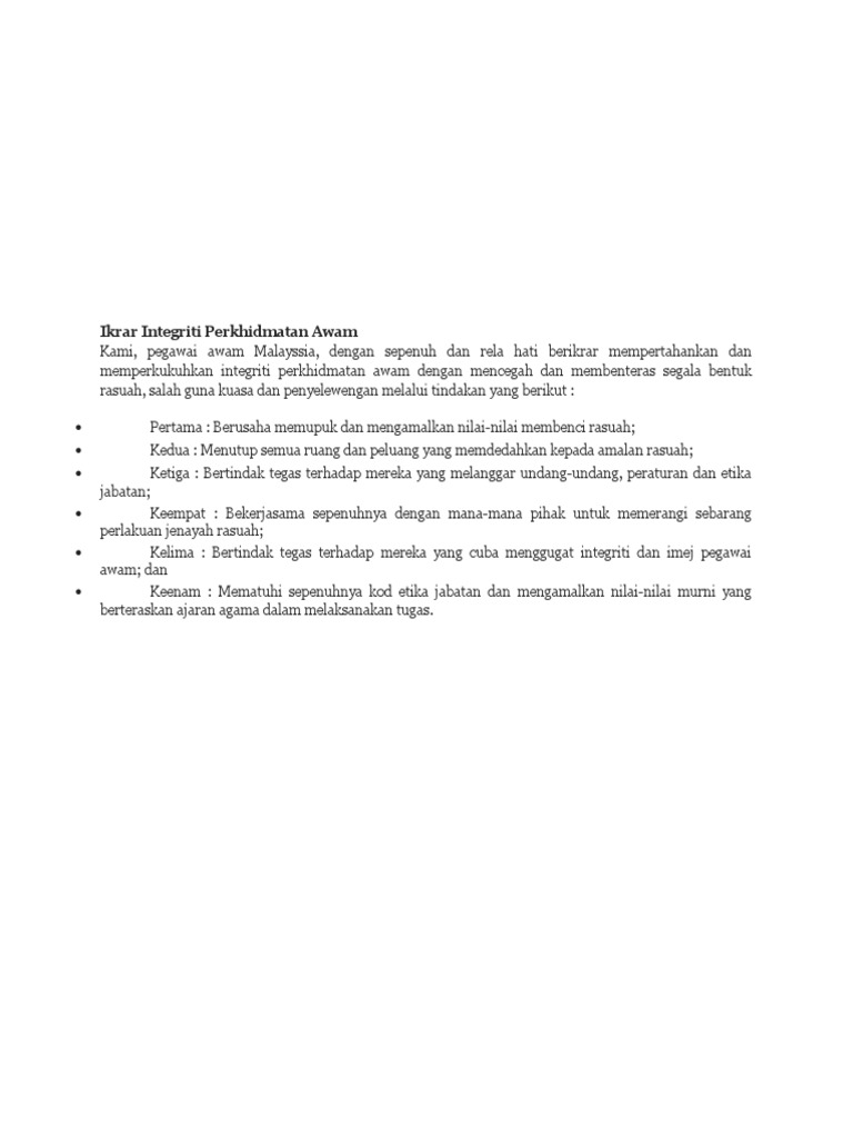 Ikrar Integriti Dan Ikrar Perkhidmatan Awam Pada Perhimpunan Rasmi Sekolah Bacaan Lkrar Integriti Dan Lkrar Perkhidmatan Awam Yang Melibatkan Semua Guru Di Pdf Document