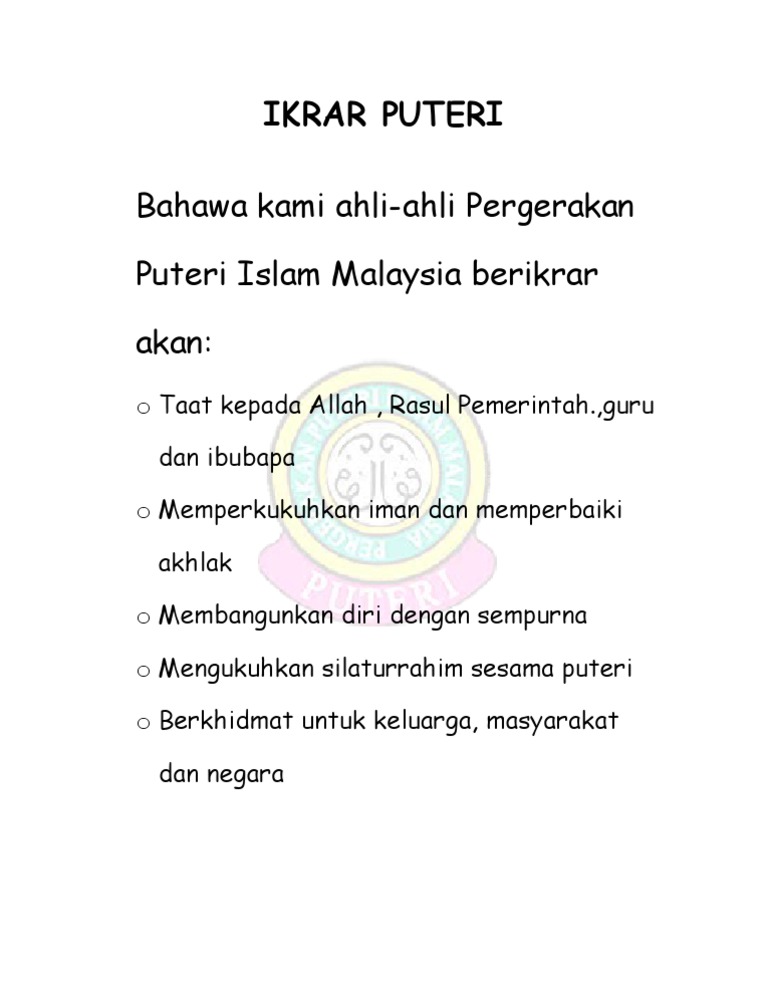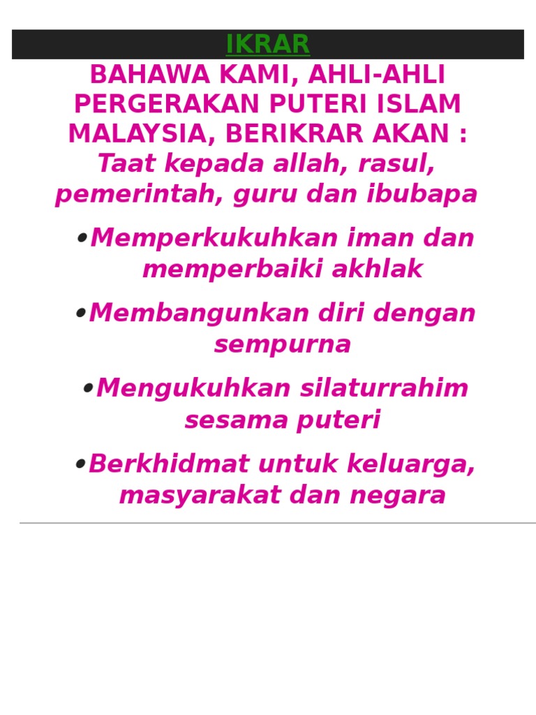 Persatuan Puteri Islam Smkdabb Lagu Dan Ikrar