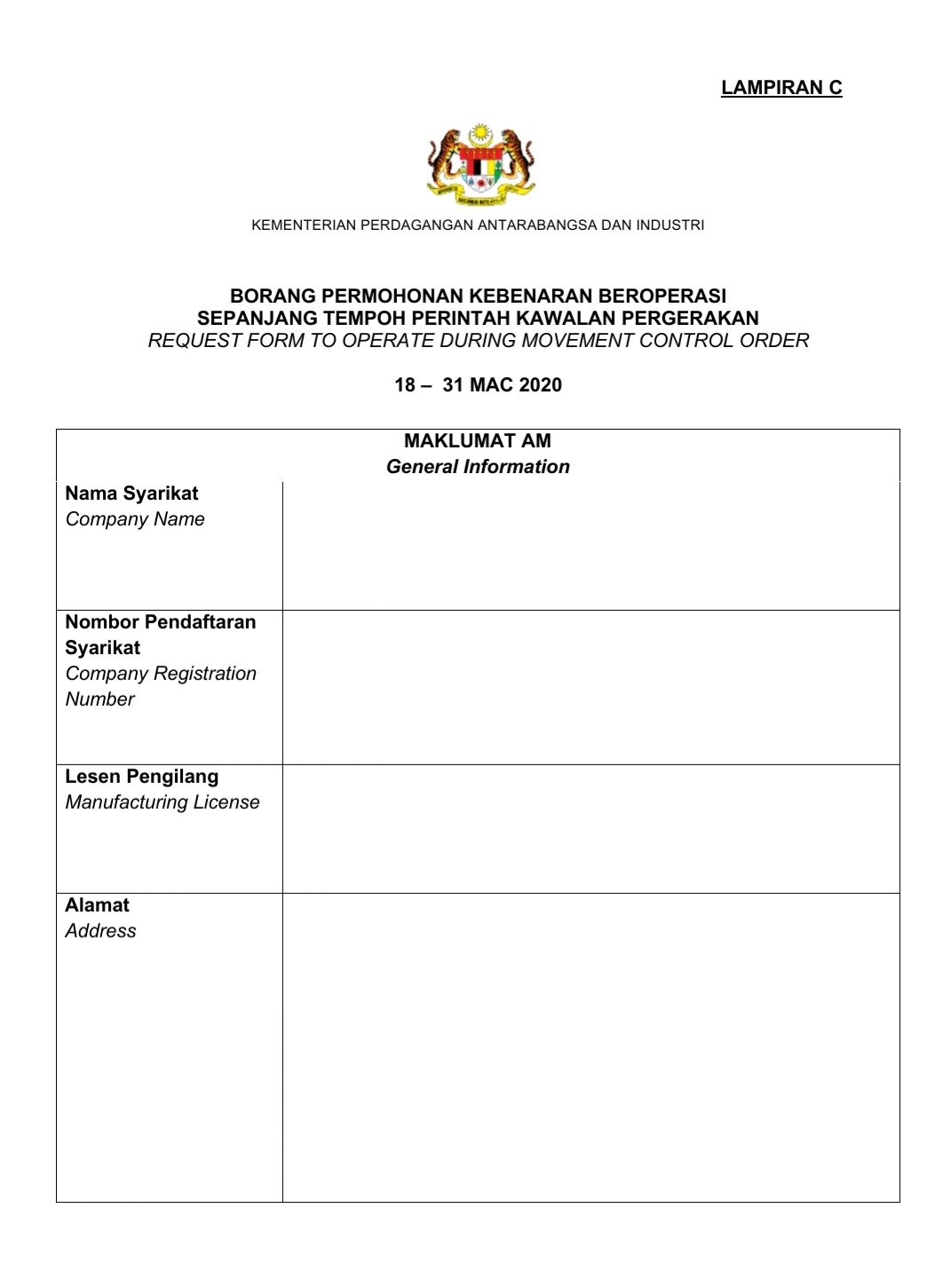 Miti Malaysia On Twitter Salam Hormat Mohon Tuan Isi Borang Ini Dan Emelkan Kepada Covid19 Mfg Miti Gov My Kami Mohon Maaf Atas Kesulitan Ini Https T Co Fqzliliep2