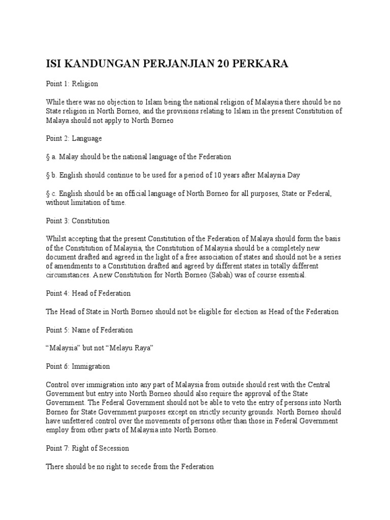Perjanjian 20 Perkara Sabah Wikipedia Bahasa Melayu Ensiklopedia Bebas