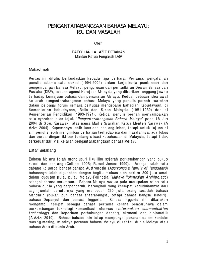 Kertaskerja Pengantarabangsaan Bahasa Melayu Isu Dan Masalah