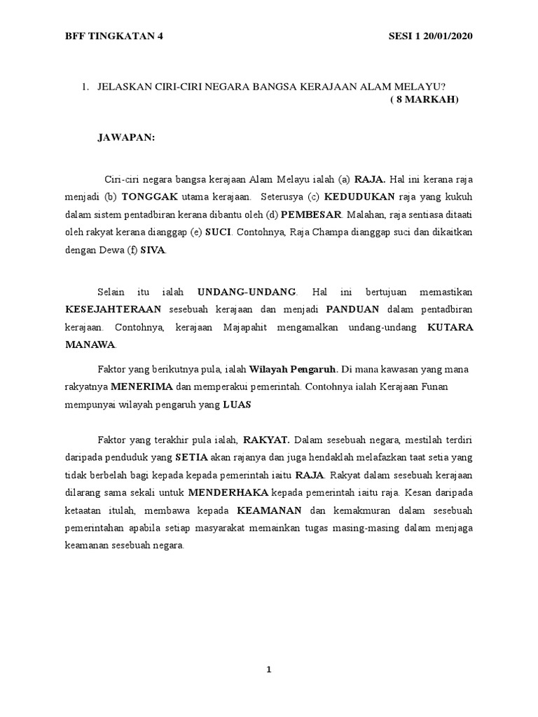 Jelaskan Ciri Ciri Negara Bangsa Kerajaan Alam Melayu