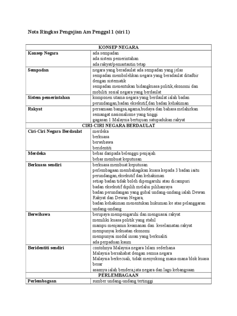 Nota Ringkas Pengajian Am Penggal 1 S4 Docx Document