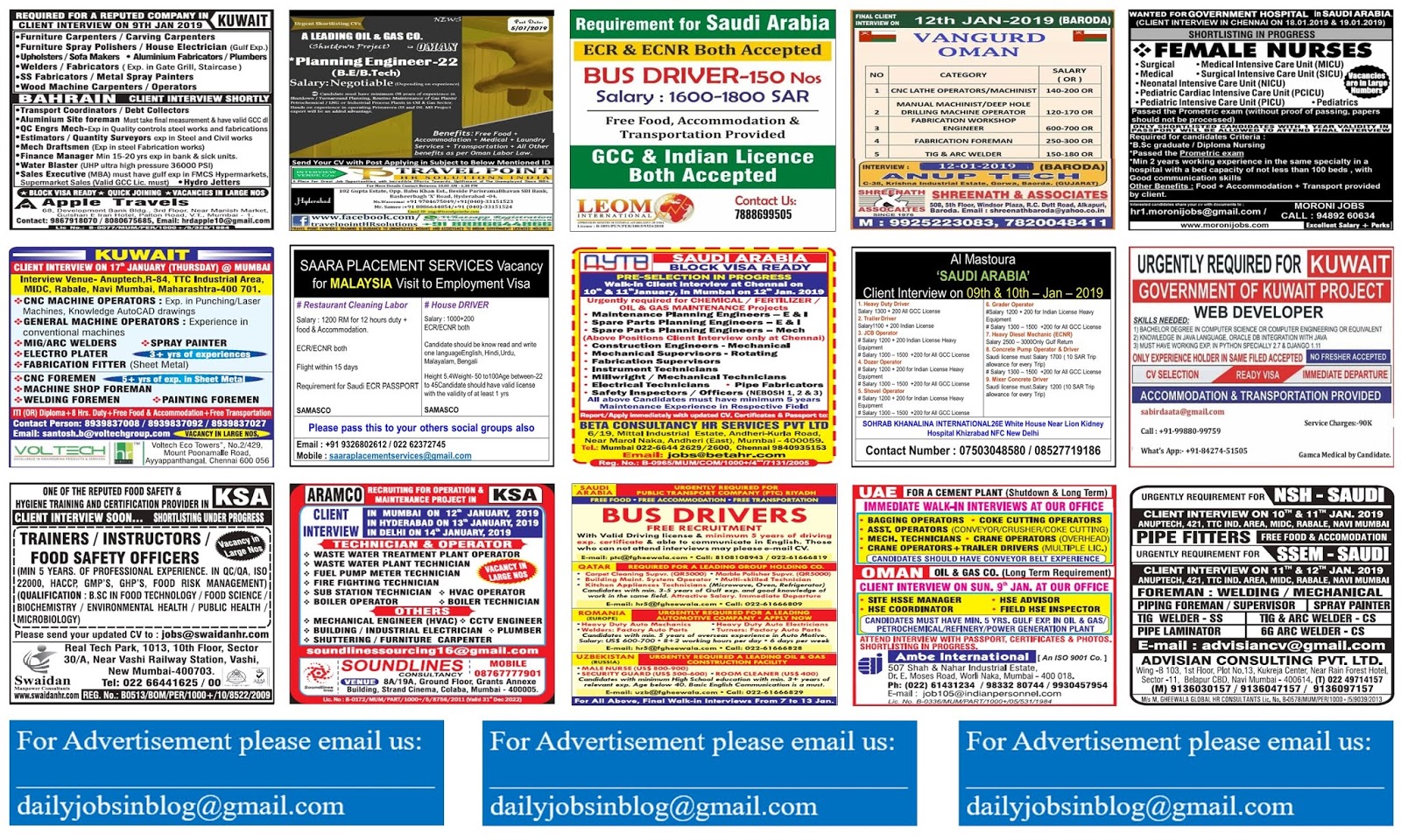 Malaysia Gulf Countries Jobs Announcement Walk In Interview Schedule From 09th To 17th Jan 2019 Interview Location Mumbai Delhi Chennai Trichy Hyderabad Kochi Pune Surat Baroda India Job Location Malaysia Oman