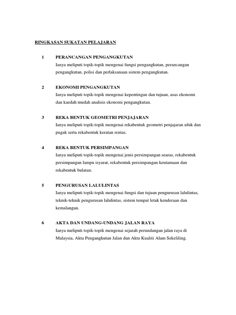 Pdf Ringkasan Sukatan Pelajaran 1 Perancangan Pengangkutan Piring Hitam Academia Edu