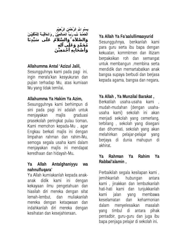Doa Graduasi Prasekolah