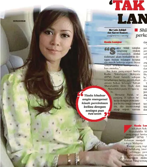 Pressreader The Star Malaysia 2016 09 03 Sultan Weds Newsreader Selangor Ruler Sultan Sharafuddin Idris Shah Marries Television Personality Norashikin Abdul Rahman