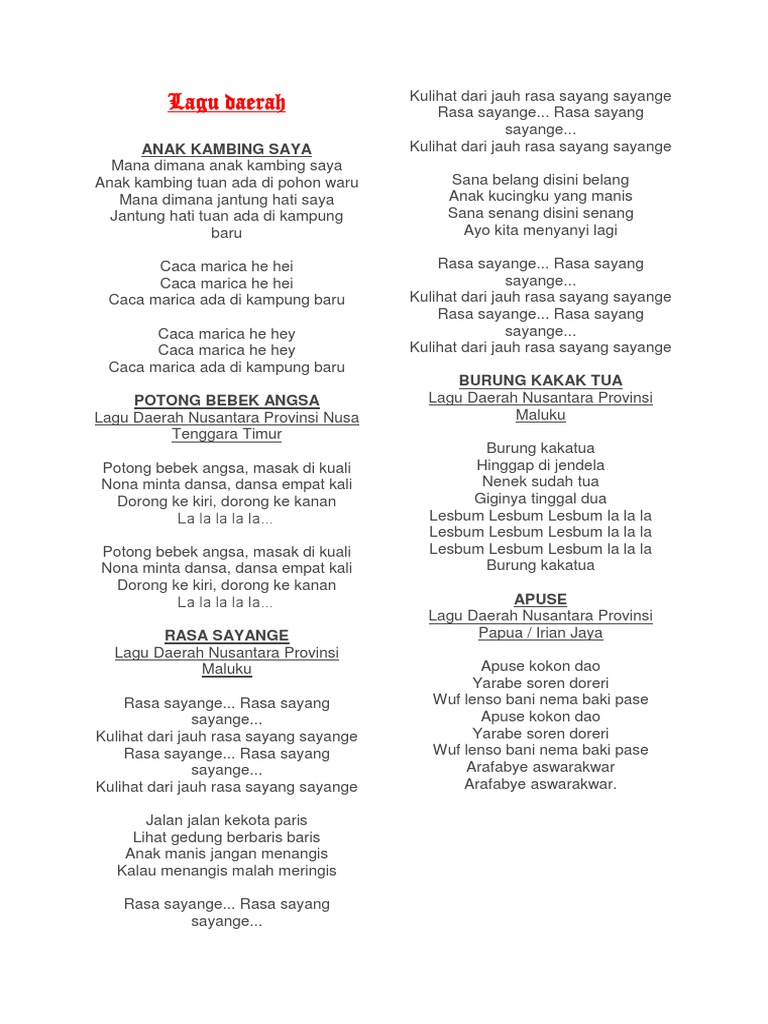 10 Lagu Daerah Dan Nasional Indonesia Docx