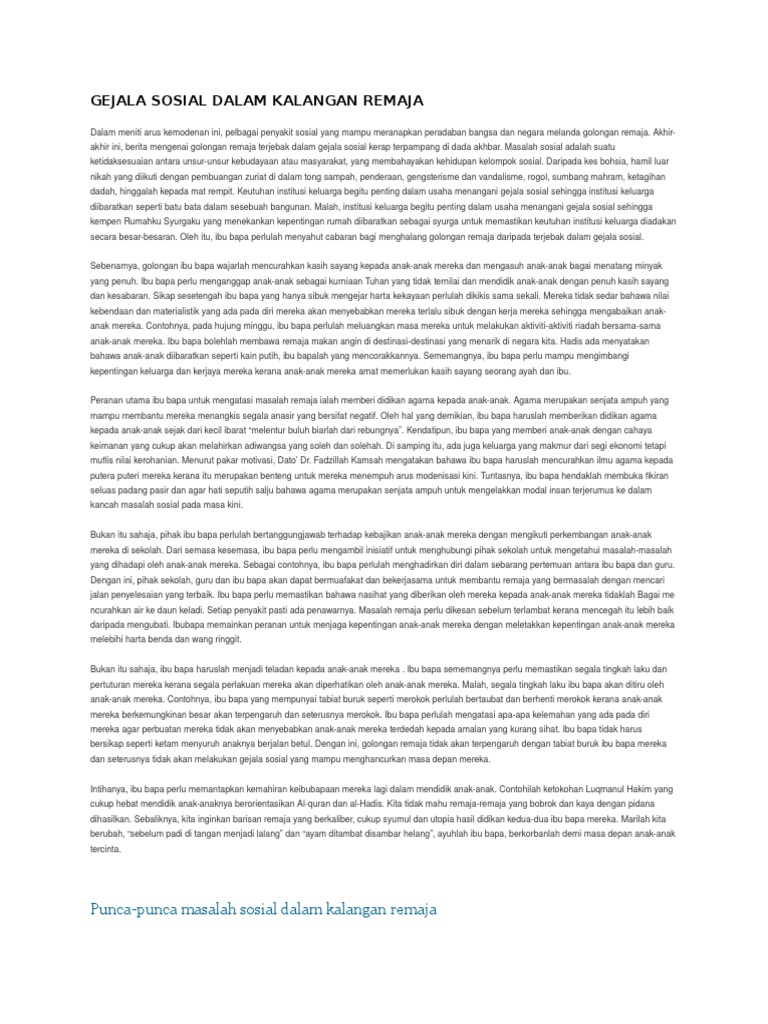 Doc Karangan Masalah Gejala Sosial Docx Ida Yeop Academia Edu