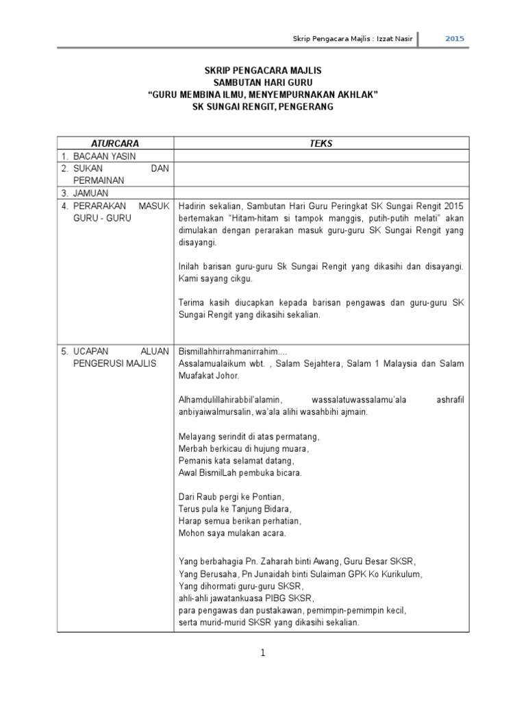 Skrip Pengacara Majlis Hari Guru 2015