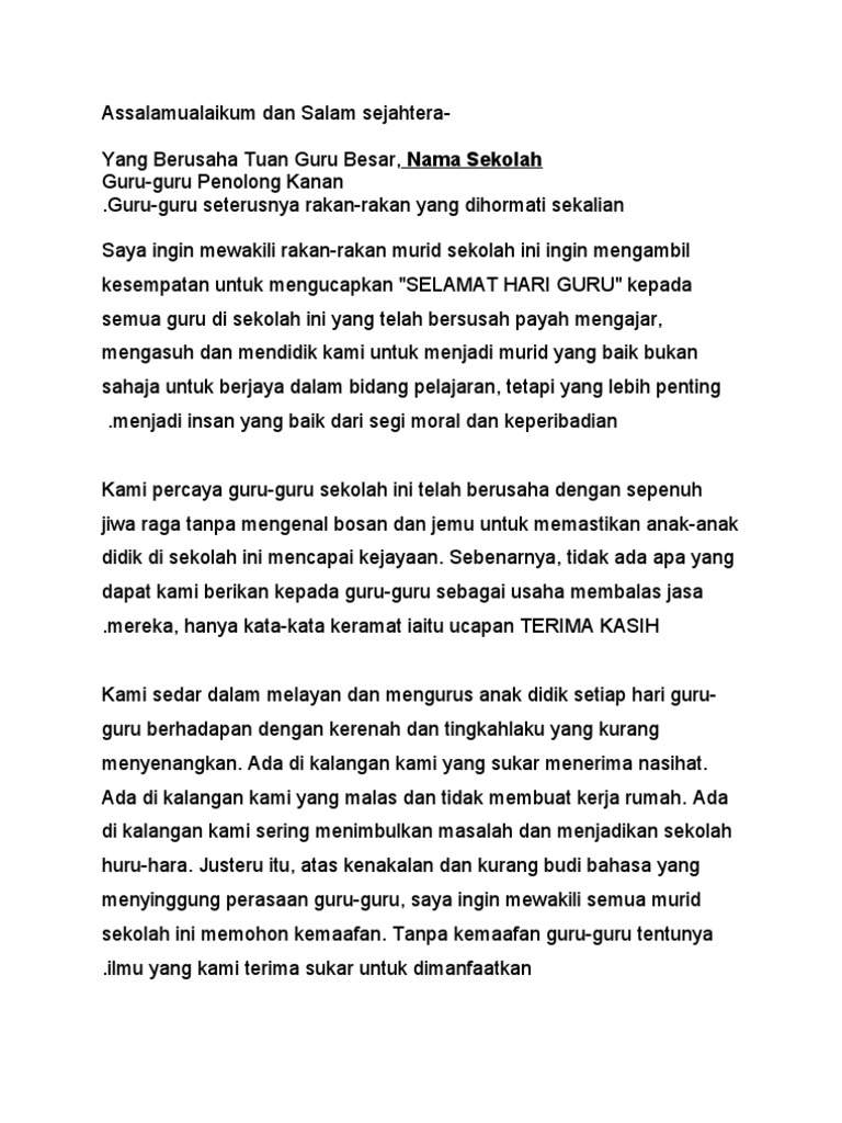 Ucapan Murid Hari Guru