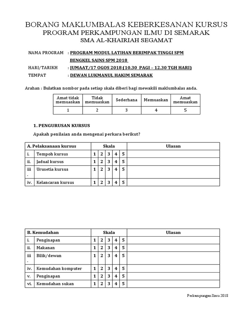 Doc Contoh Borang Maklum Balas Alyaa I Mohd Razali Academia Edu