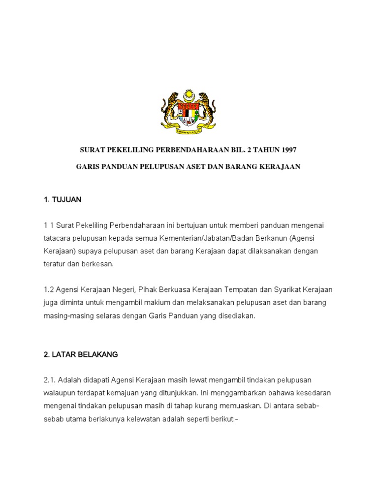 Pp Bil21997 Garis Panduan Pelupusan Aset Dan Barang Kerajaan