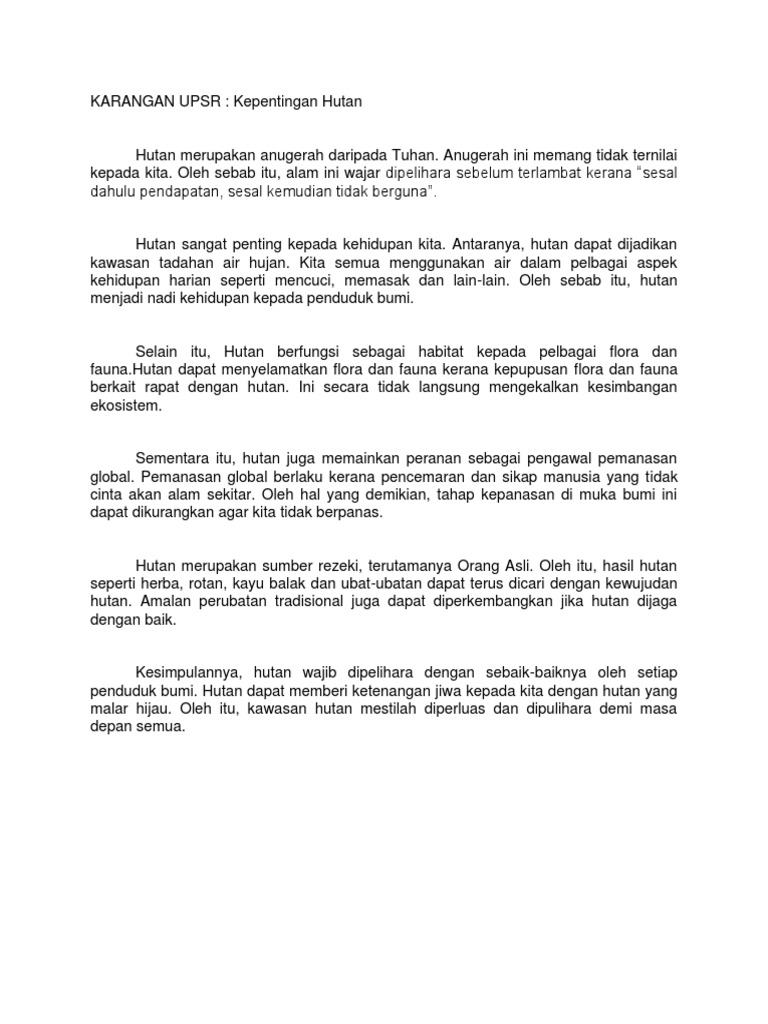 Kepentingan Hutan Kepada Kehidupan Karangan Stpm