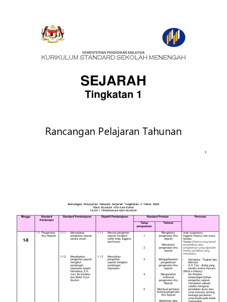 Dskp Kssm Sejarah Tingkatan 1