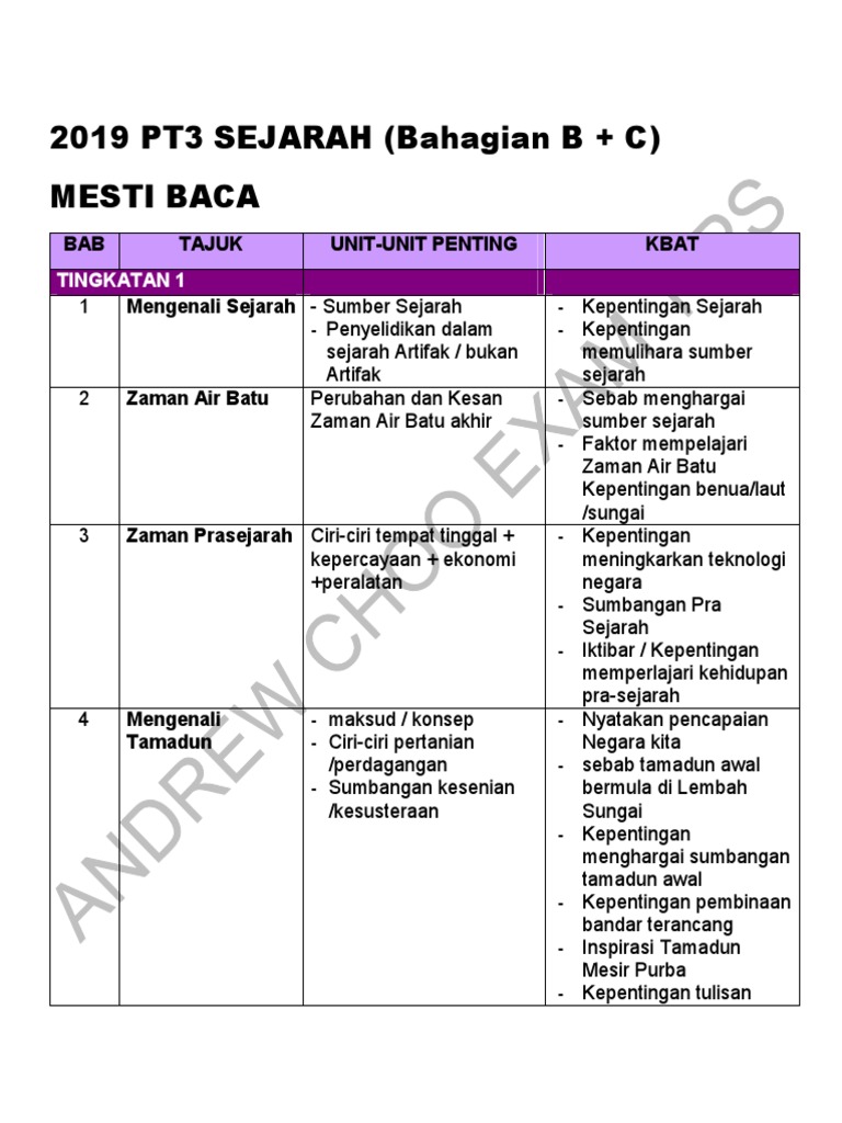 Sejarah Tingkatan 1 Kurikulum Standard Sekolah Menengah Dokumen Standard Kurikulum Dan Pentaksiran Pdf Free Download