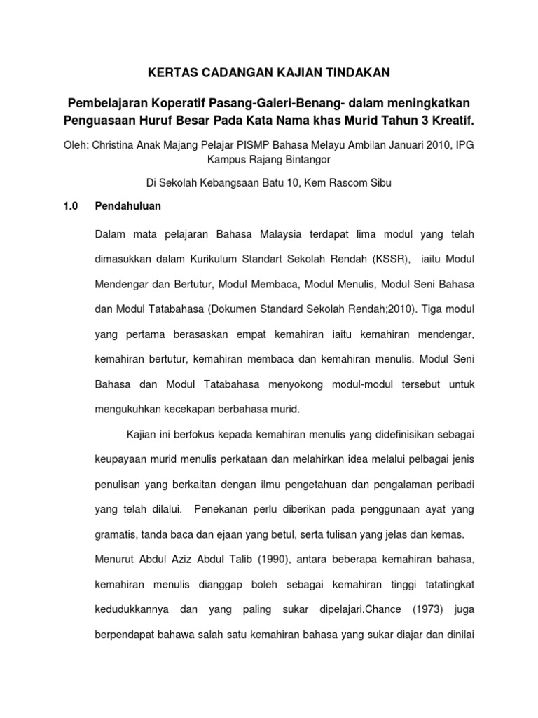 Pdf Kertas Cadangan Proposal Kajian Tindakan Ben Lau Academia Edu