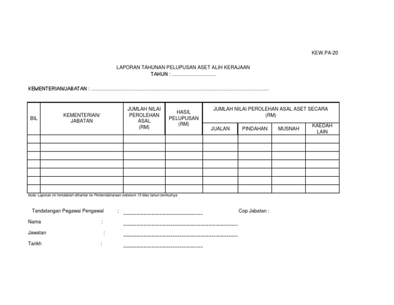 Kew 1 Pa 20 Laporan Tahunan Pelupusan Aset