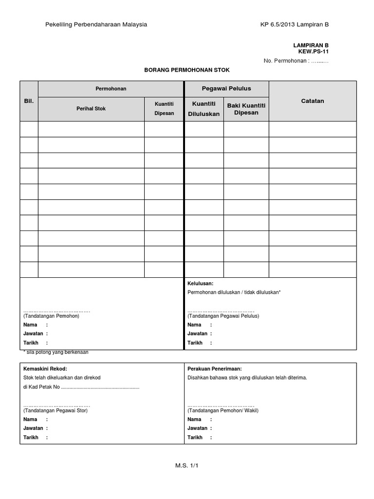 Kew Ps 11 Borang Permohonan Stok Doc Document