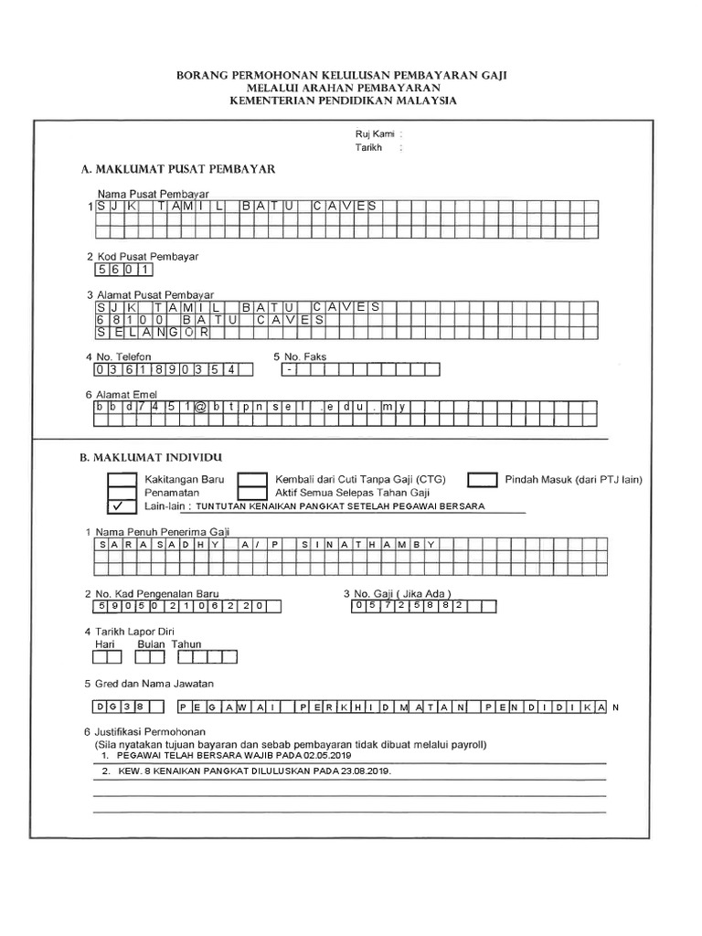 Borang Permohonan Kelulusan Pembayaran Gaji Melalui Arahan Pembayaran 1 Sarasadhy